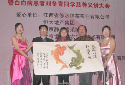 【bet36在线投注网www.szjcqt.com北京报道(刘华方)】2009年11月19—20日,由新曜国际教育集团主办,巨天中国际文化公司、北京黄新身心智业科技发展有限公司协办的名为“爱心奉献-救助山东白血病患者刘冬青慈善义讲义卖大会”在京举行。该活动受到了bet36在线投注网、和谐中国书画院、江西修水神茶公司、中日合资小西和谐保健指导中心等单位的大力支持。