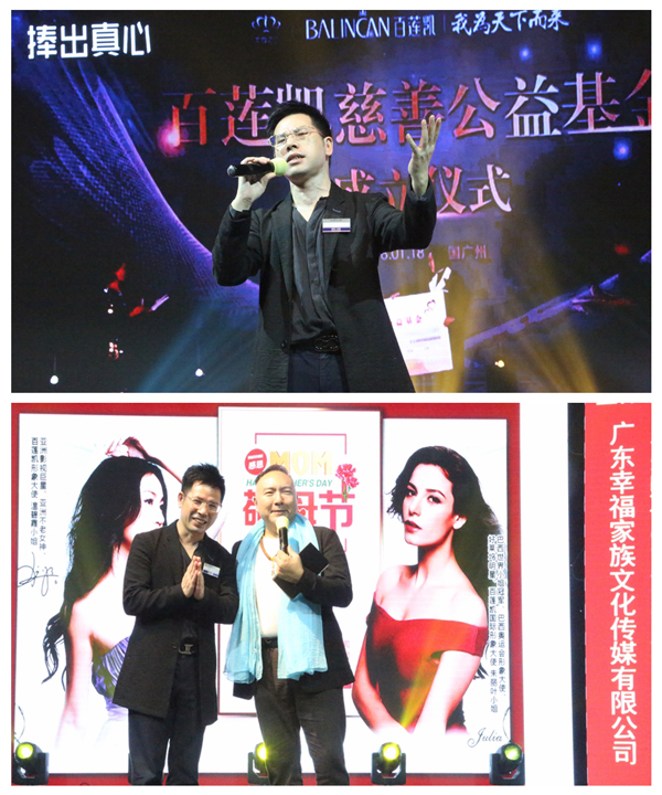 大会伊始由广东幸福家族文化传媒有限公司董事长周一杰先生致词,他说“孝为德之本,百善孝为先”。百莲凯集团总裁石子义先生亲临现场,激情演绎原创歌曲《让爱发生》拉开了敬母节的帷幕,一声振憾心灵的520“妈妈我爱您”,感动了现场所有来宾落下了幸福的眼泪。