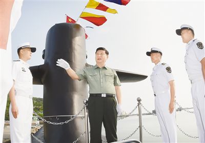 夏日的青岛,红瓦绿树,碧海清风。15时30分许,习近平来到某潜艇部队,首先听取了部队建设有关情况介绍。军港码头上,前不久参加过南海海域海上阅兵的某新型潜艇伏波静卧,满旗高悬,艇员们在艇面上分区列队,精神抖擞迎接习近平到来。习近平登上潜艇,走到艇员们中间。习近平一直牵挂着常年奋斗在深海大洋的潜艇兵们,他关切询问官兵的工作生活情况。了解到官兵们爱岗敬业、战风斗浪,圆满完成各项工作时,习近平点头赞许。习近平下舱室、进战位,详细了解武器弹药技战术性能。他勉励官兵们坚定理想信念,建设坚强集体,把打赢本领搞过硬。习近平在潜艇航泊日志上郑重签名。离开码头时,习近平特意走向停泊在附近的另一艘潜艇,向整齐站坡的官兵们挥手致意。