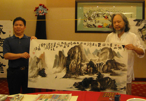 中铁十八局隧道工程公司总经理邓勇与书画家合影