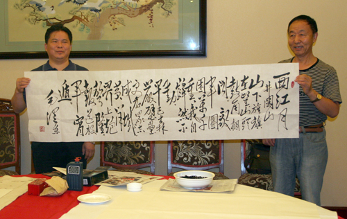 中铁十八局隧道工程公司总经理邓勇(左)与书法家苏联瑞(右)