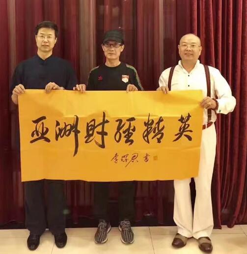 李耀君老师向杜猛先生赠送书法“亚洲财经精英”